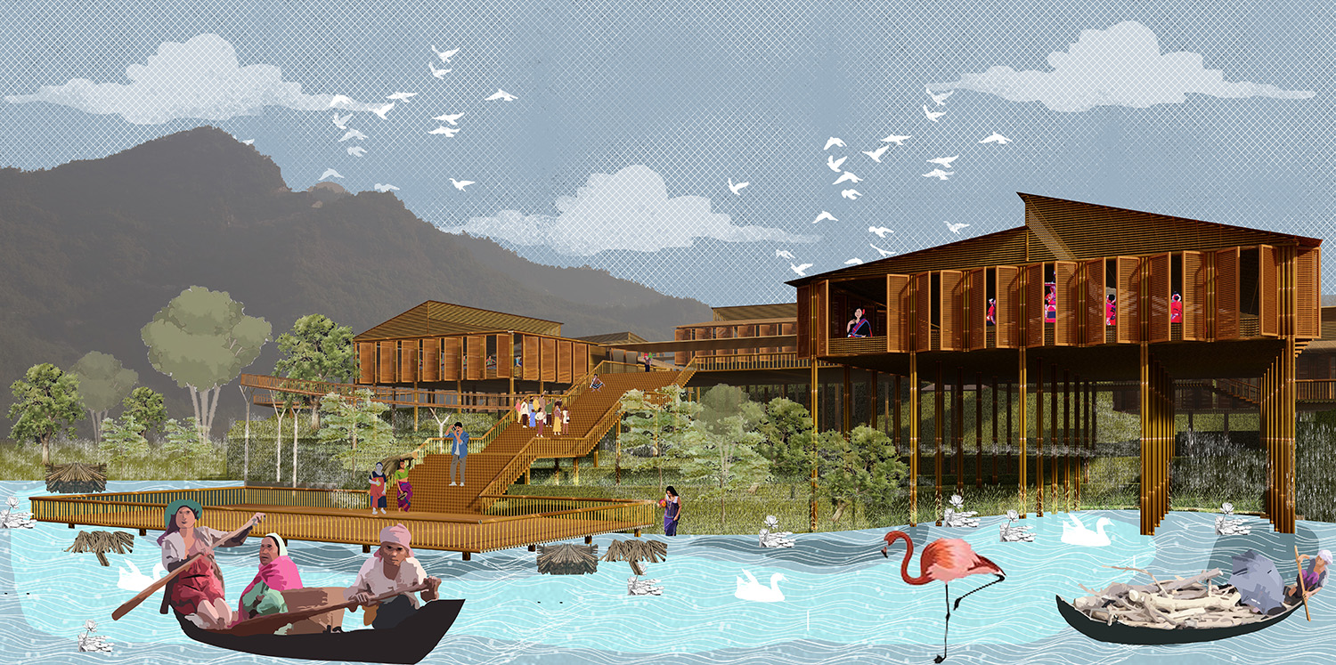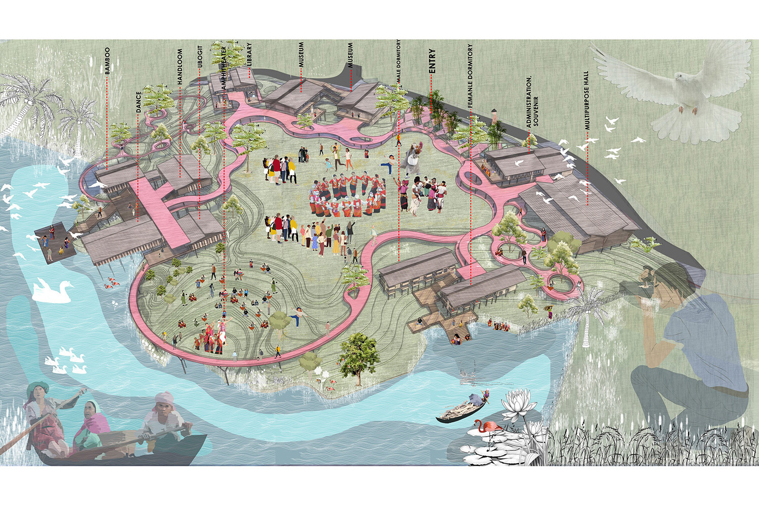 In its construction, the centre prioritizes local materials such as bamboo, wood, and thatch, and employ traditional building techniques and craftsmen. This approach ensures sustainability, honors cultural significance, and utilizes ancestral knowledge passed down through generations. Ultimately, the Centre for Chakma Cultural Harmony aims to be an active and sustainable hub where heritage is not just stored but actively lived, celebrated, and expanded as a source of inspiration for the future.