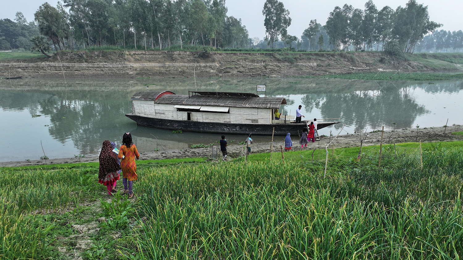 The Floating Schools initiative in Pabna District, Bangladesh, addresses the recurring challenge of education and healthcare access in flood-prone riverine regions. Developed by architect Mohammed Rezwan, the project combines architectural design, cultural continuity and climate adaptation through a fleet of five solar-powered floating structures, including two schools, a library, a training centre and a health clinic. These boats serve flood-prone communities along the Gumani River in the Faridpur and Bhangura subdistricts of Pabna. The initiative began as early as 2002, evolving over two decades into a mature system that became fully operational in 2021 along an 8-km stretch of the river.