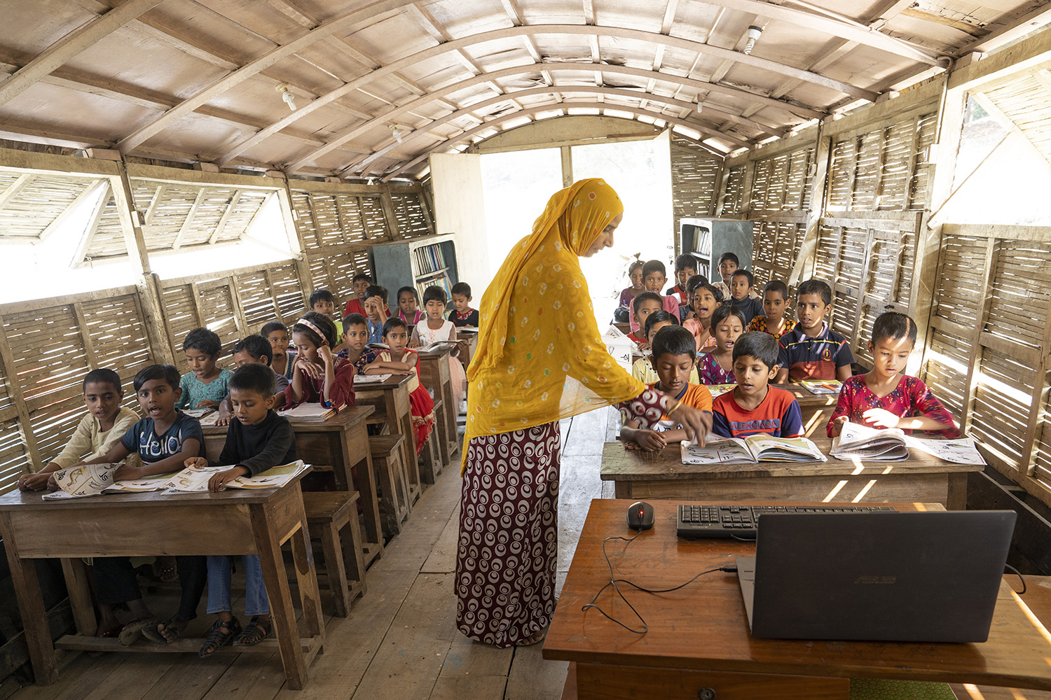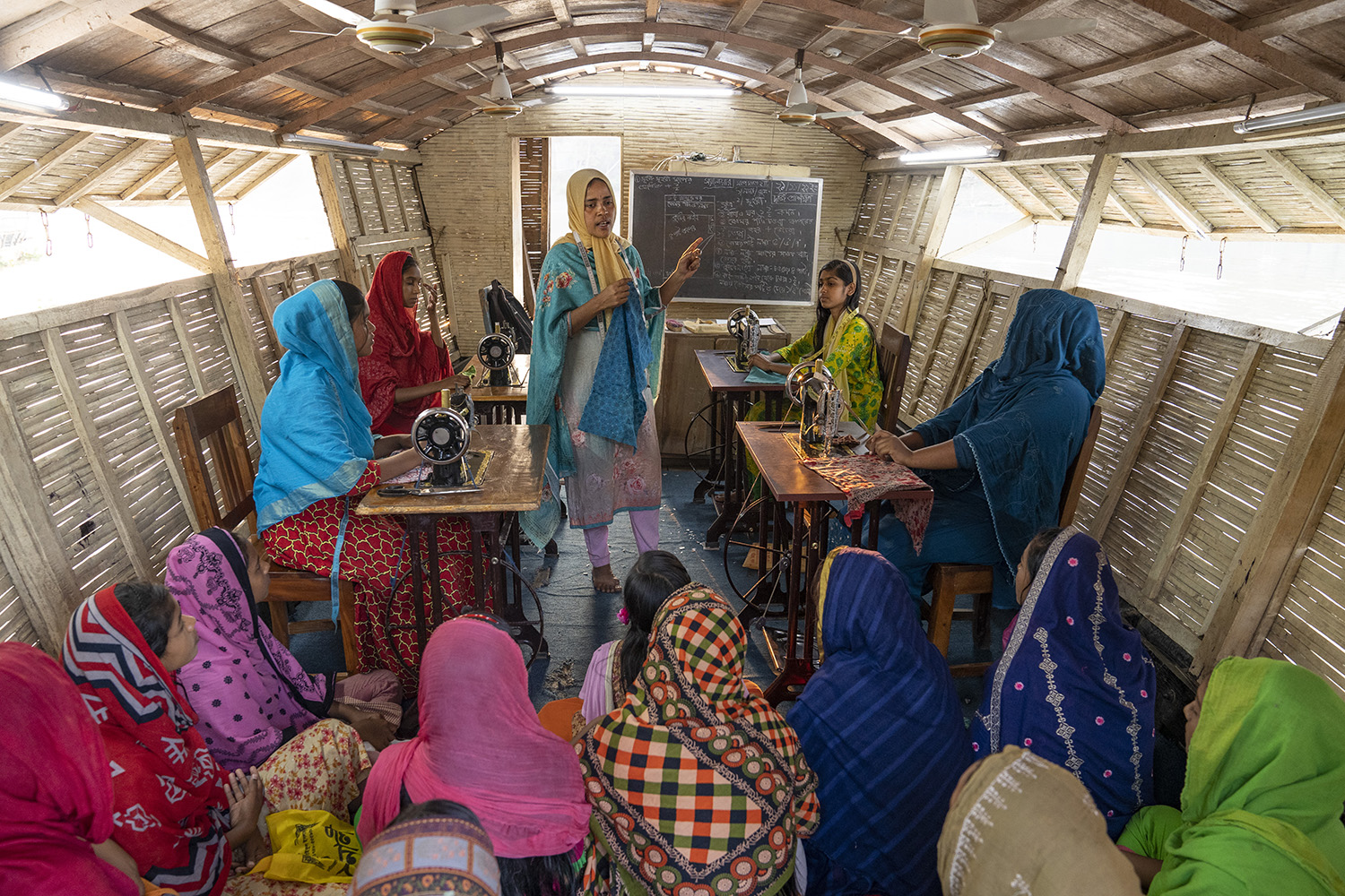 The idea grew from a simple yet urgent problem: children could not reach school when floodwaters cut off their villages. Instead of building on land that was constantly submerged, Rezwan turned to the rivers themselves for solutions. Working closely with local communities, he transformed the boat – an everyday tool of survival – into a vehicle for education, empowerment and resilience. The boats are designed in-house and built by local boat builders, drawing on generations of traditional craftsmanship. Many members of the project team, including programme managers, boatyard supervisors and educators, come from the same communities the boats serve. Some former students have even returned as teachers, a living testament to the project’s long-term social impact.