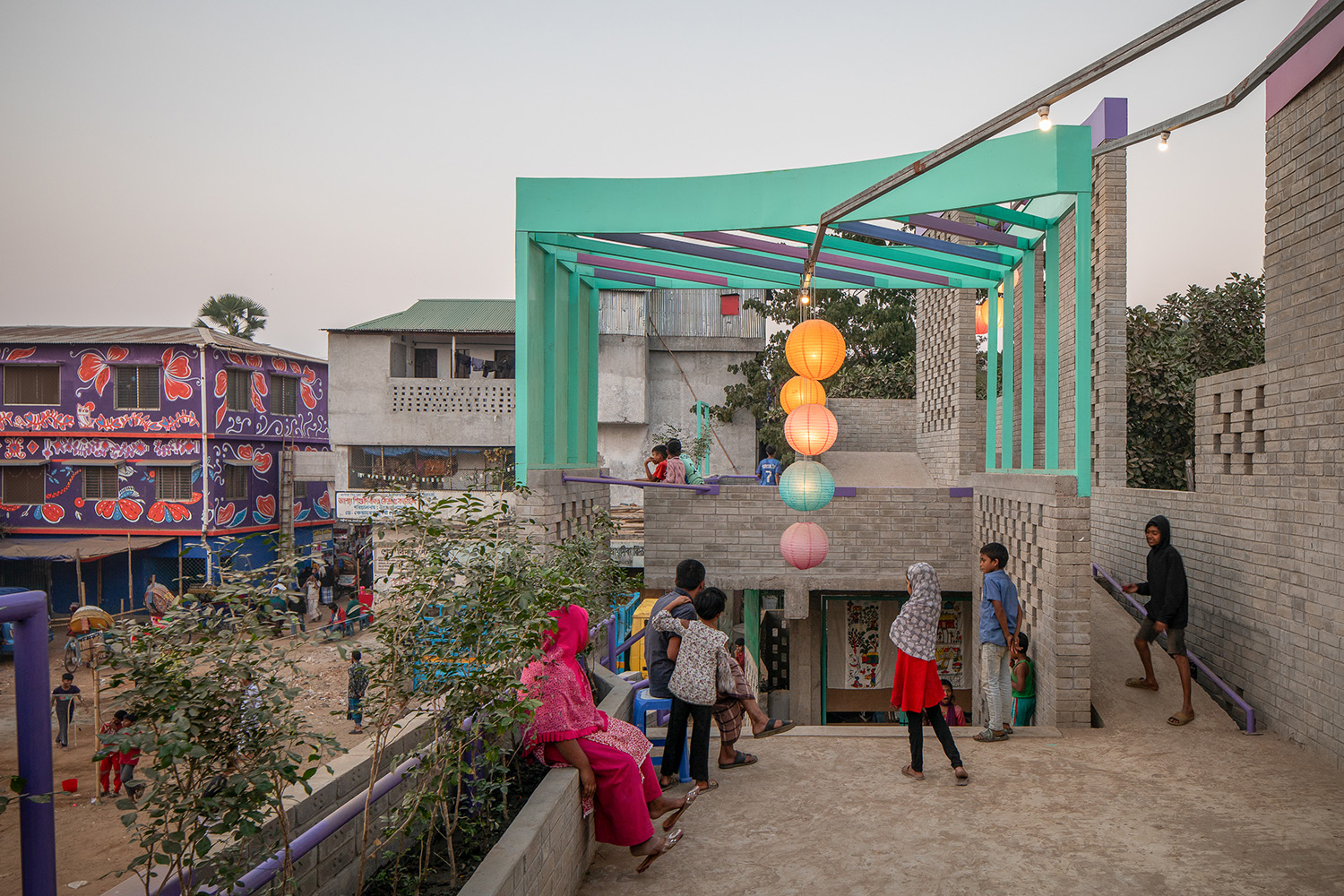 The project Machan, developed by the Dhaka-based collective Paraa, challenges this oversight by placing creativity, learning and care at the centre of civic life. The project is a key part of the wider Korail: City of Culture initiative, which grew from long-term collaboration with residents, youth groups and community leaders to promote art and participation as tools for community building.
