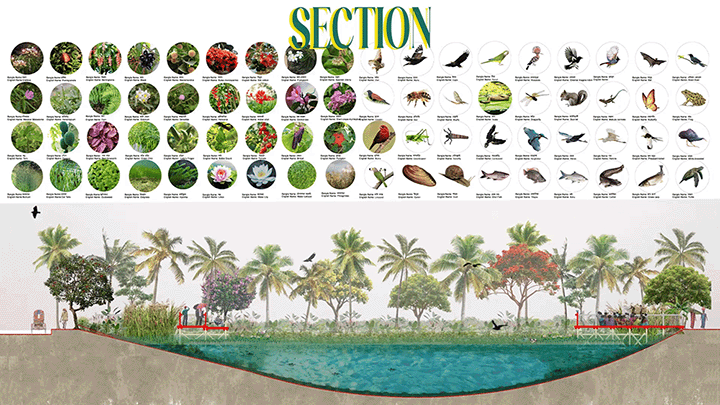 Through site visits, the project team studied spatial rhythms, user behavior, and ecological patterns. These observations were combined with insights from environmental experts and aquaculture specialists. Instead of relying on heavy technological interventions, the proposal explored low-cost, nature-based solutions to restore water quality and biodiversity.